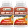 Best Naturals 2 Packs Resveratrol Complex 500 mg 60 Veg Capsules Made with Grape Skin, Red Wine, Quercetin - Gluten Free & Non GMO - (Total 120 Capsules)