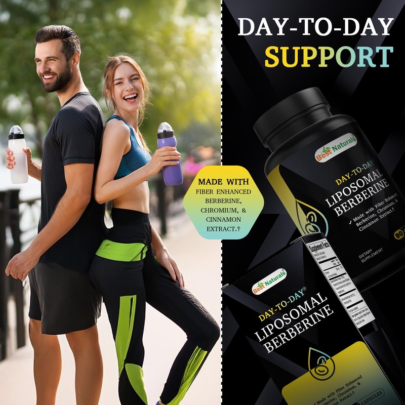 Best Naturals Best Naturals Day to Day Liposomal Berberine 1200 mg with Bioperine 90 Veg Capsules - Made with Fiber Enhanced Chromium, & Cinnamon Extract & Bioperine.