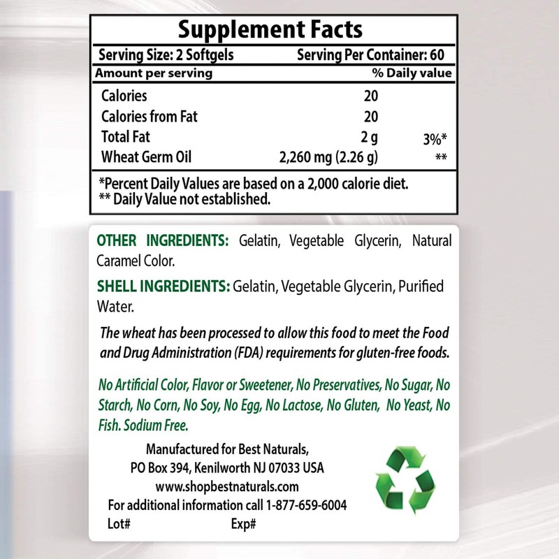 Best Naturals Wheat Germ Oil 1130 mg 120 Softgels