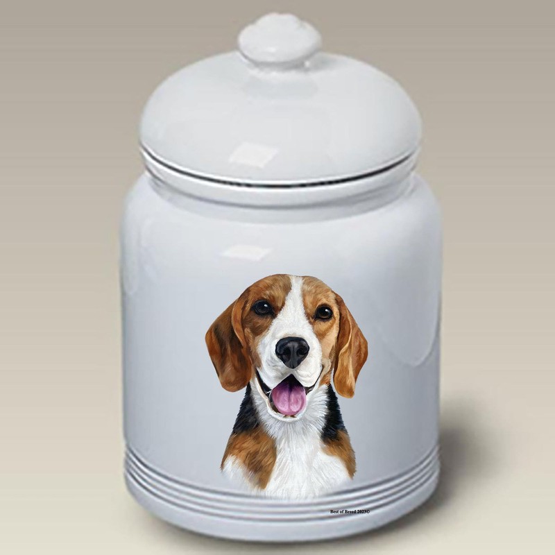 Best of Breed Beagle Dog and Cat Ceramic Treat Jar 9" Tall Air Tight Seal All White