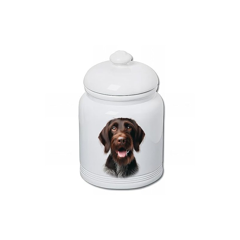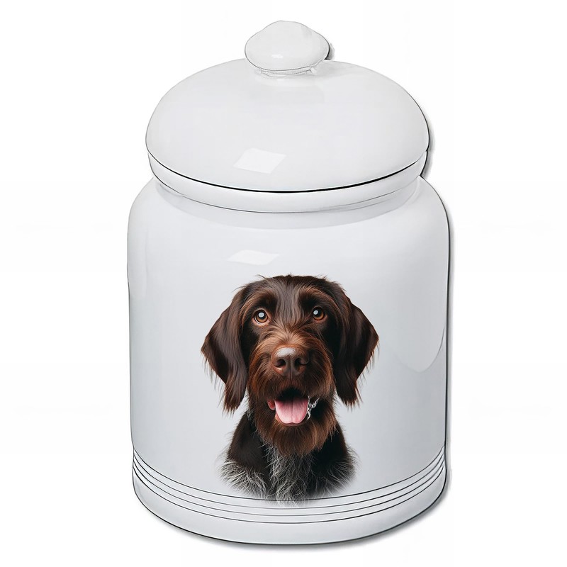 Best of Breed German Wirehaired Pointer Dog and Cat Ceramic Treat Jar 9" Tall Air Tight Seal All White