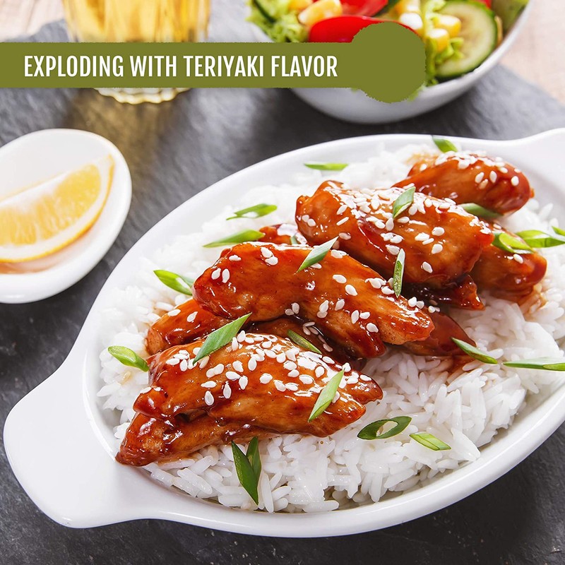 - TAKE ANY STIR FRY FROM TASTELESS TO TASTY: Our glorious teriyaki glaze features a perfectly tangy bite, rich, velvety consistency, and satisfying sesame seed crunch. Use it as a sauce or marinade for chicken, meats, veggies, rice, noodles, vegan tofu, wings, and more.