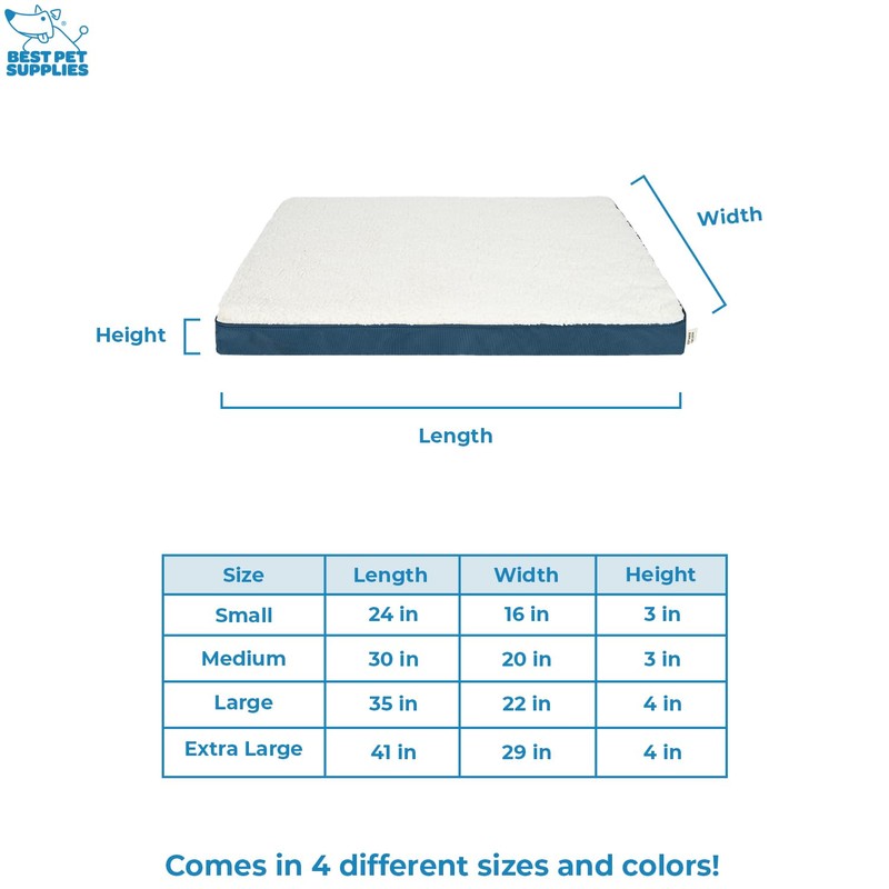 Best Pet Supplies Cute Dog Crate Mat Flat Bed with Waterproof Exterior, Thick Orthopedic Egg Foam Mattress, and Soft Sherpa Fleece Cover for Small, Medium, and Large Breeds - Blue, 24X16X3