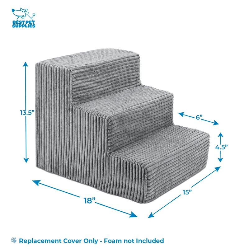Best Pet Supplies Dog Stairs & Steps - CertiPur-US Made in USA Foam Steps for Small Dogs & Cats, Non-Slip Indoor Balanced Pet Step Support, Dog Ramp, No Assembly, Gray, 3-Step (13.5-inch Height)
