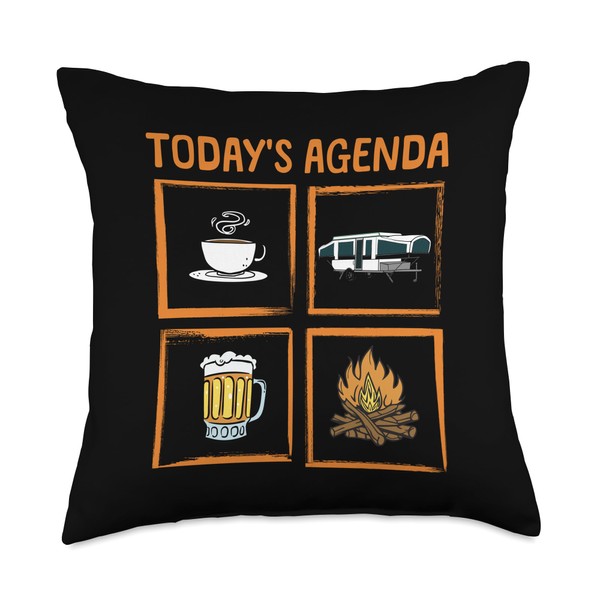 - Funny pop up camper gift idea with the quote Today's agenda for pop up campers. Cool on birthdays and Christmas for RV camping lovers & tent or caravan fans who love setting up pop up trailer in the campsite.