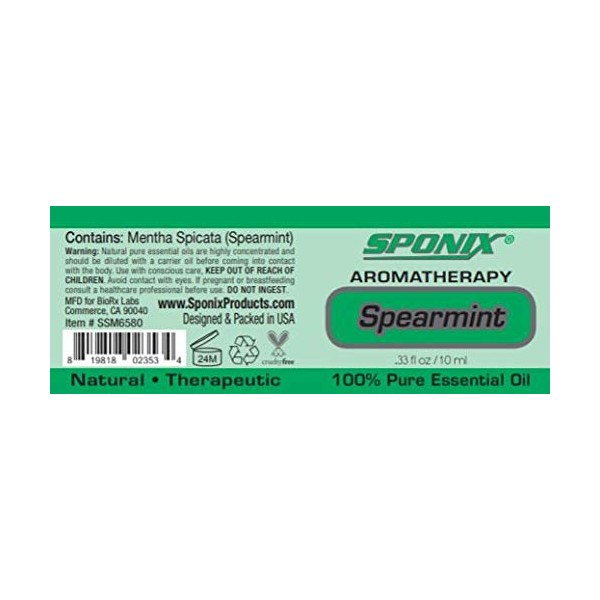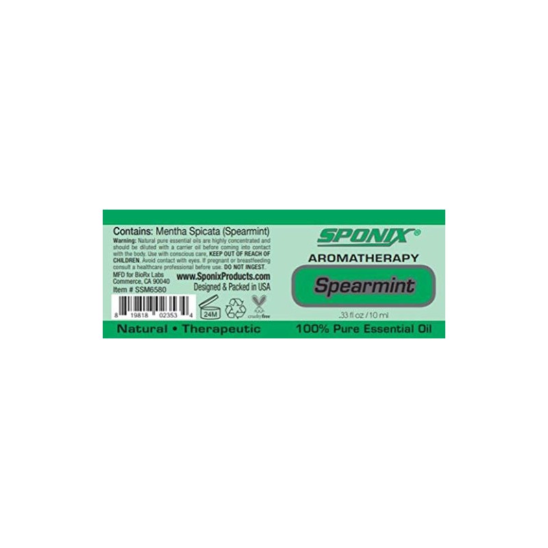 Best Spearmint Essential Oil - Top Aromatherapy Oil - 100% Pure - Therapeutic Grade and Premium Quality - 10 mL by Sponix