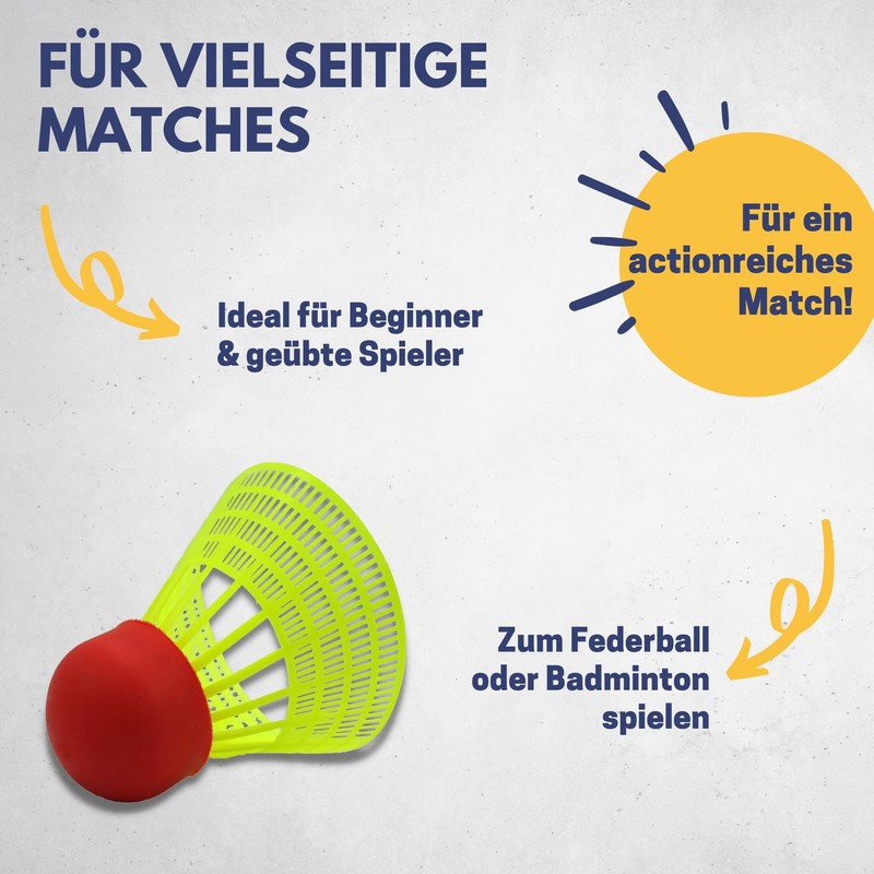 - Durable: the particularly stable and robust material ensures that the badminton balls do not lose their shape even with frequent use and can be used permanently.