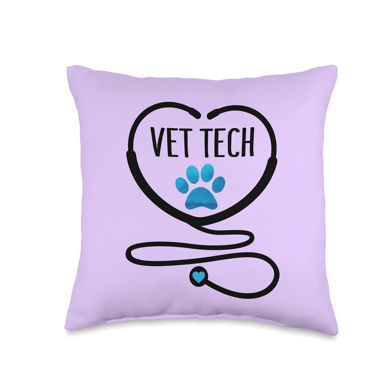 Best Vet Tech Designz Vet Tech Stethoscope Cute Veterinary Technician Appreciation Throw Pillow, 16x16, Multicolor