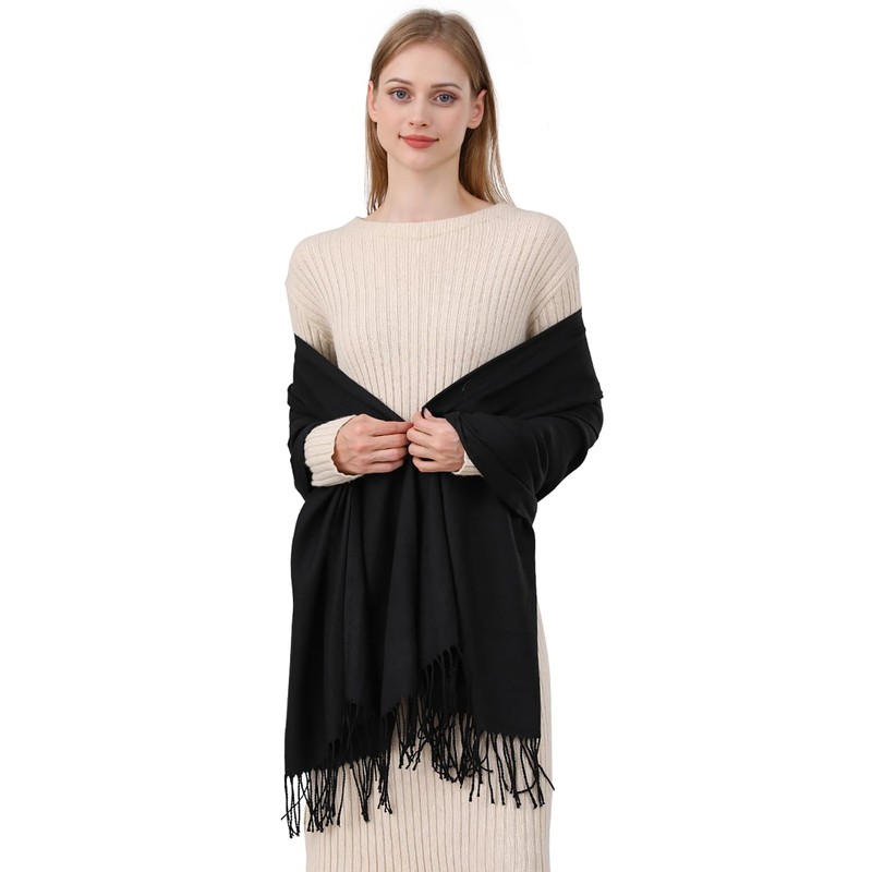 Best World 4 Yu Womens New Winter Warm Casual Scarf Solid Pashmina Tassel Style Stoles(Black)