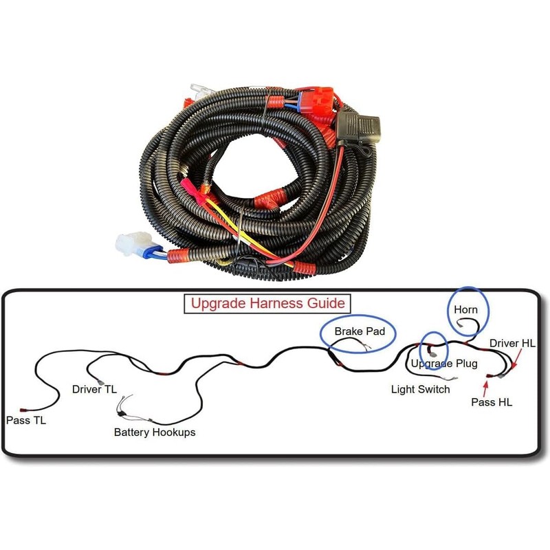 - It includes: 1* LED front headlight bar, 2* LED taillight, 1* horn, 1* turn signal lever with headlamp horn switch, 1* steering column cover, 1* brake pad switch (pedal mount), 1* plug & play wiring harness, 1* cutting templates & screw washer set, 1* installation instructions;