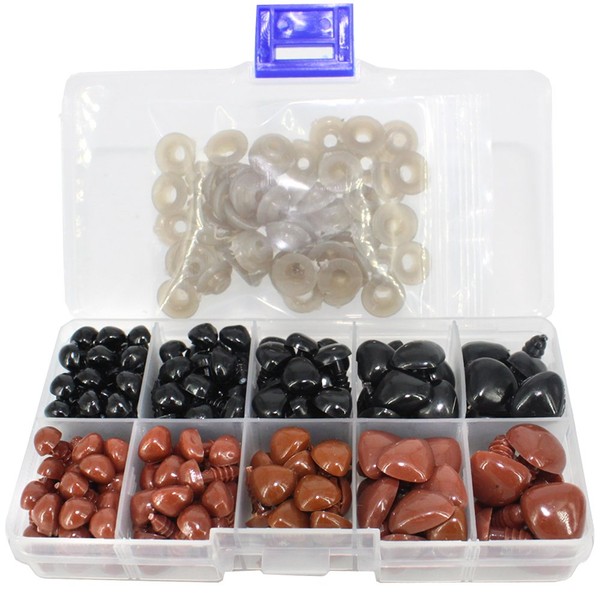 Bestartstore 130pcs 8/9/10/15/16mm Black and Brown Plastic Safety Nose D-Shape Craft Nose DIY Nose with Washers for Teddy Bear Doll Plush Animal Puppet Crafts