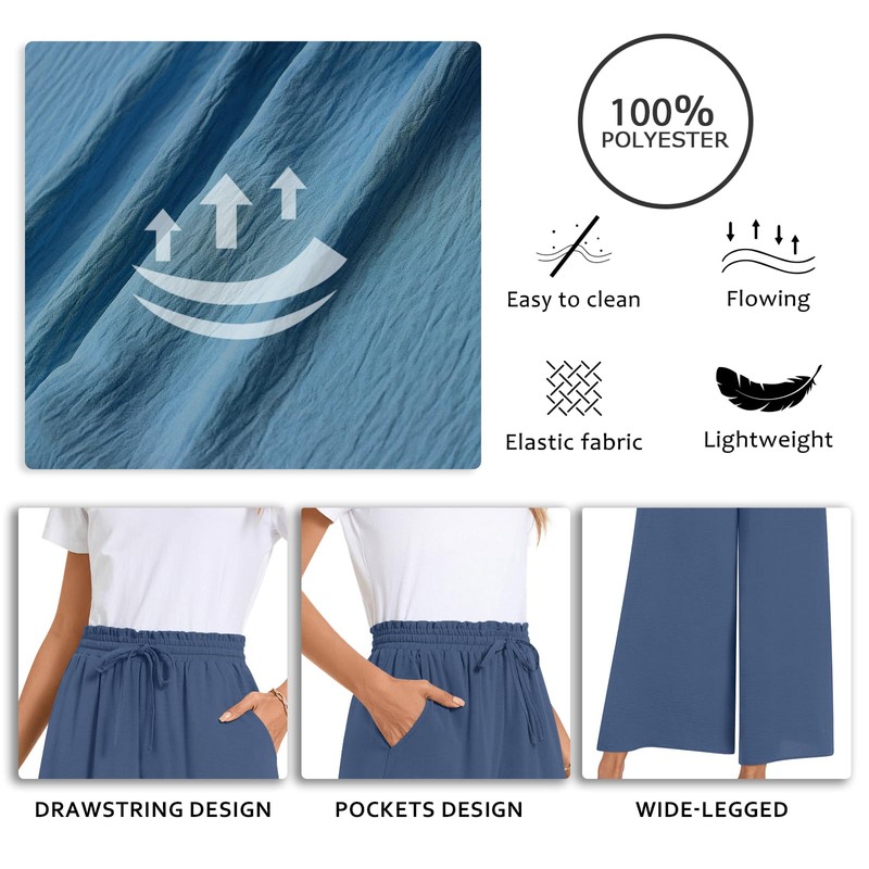 - Features: loose wide-leg design, elastic high-waist with drawstring, it's a business-casual style, not see-through, it serves as cropped pants for women to cover up, and it's a flowy and dressy style that is chic and comfy