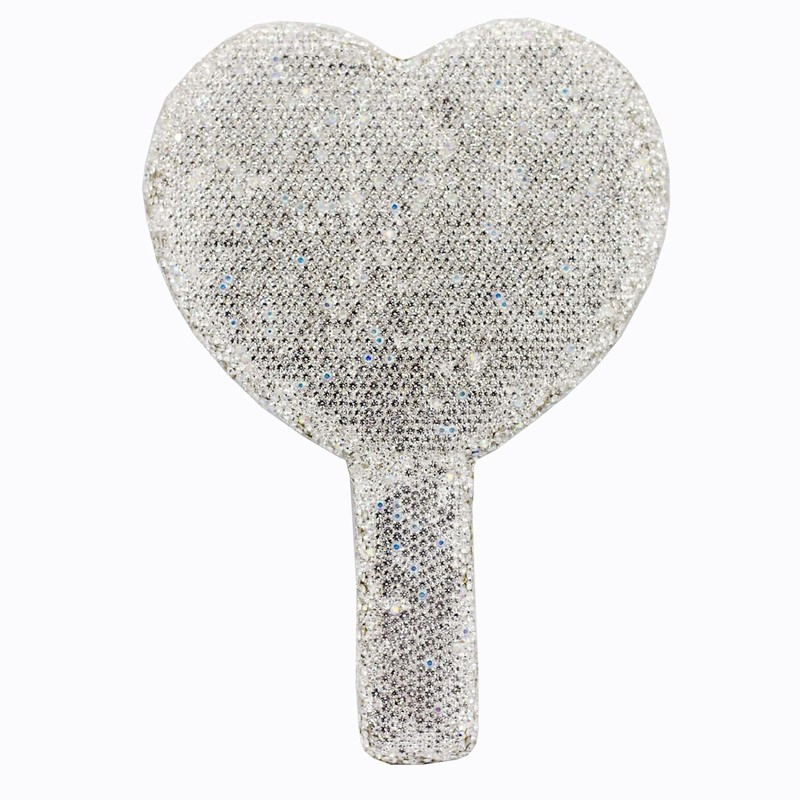 Bestbling - Espejo de mano con forma de corazón con diamantes de imitación, portátil y deslumbrante para retoques sobre la marcha (plástico blanco)