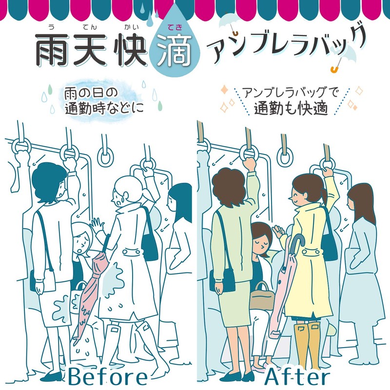 Bestco ND-889 Zebra White Umbrella Cover, Length 32.5 inches (82.5 cm), Long Umbrella, Compatible with Folding Umbrella, Car Use, Work or School Commutes, Rain Rain Drops