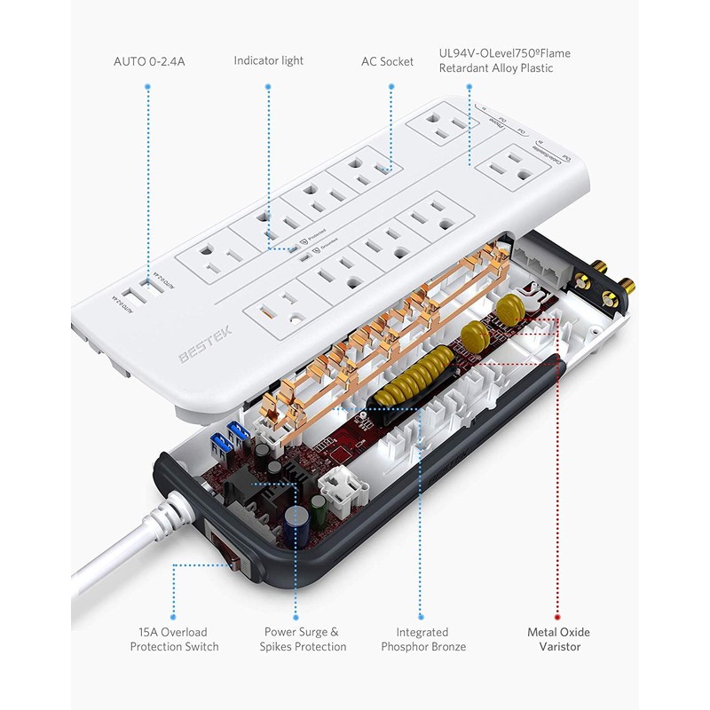 - Garantía: Protector de sobretensiones certificado FCC con cable de alimentación de autenticación UL. BESTEK proporciona un servicio al cliente amigable de 7/24 horas con nuestra política de devolución de 30 días y garantía de 18 meses.