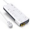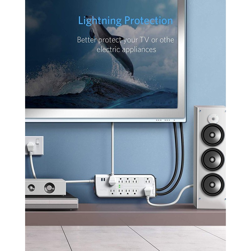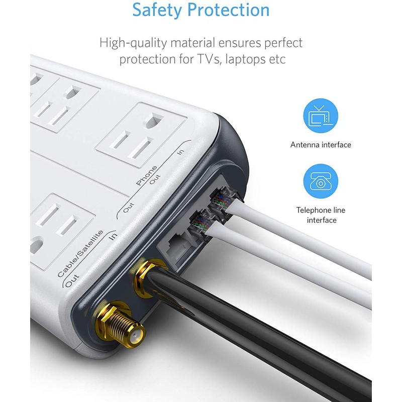 - Diseño humanizado: los agujeros de montaje aseguran fácilmente el protector contra sobretensiones a paredes, zócalos o muebles. El enchufe plano de 90 grados mantiene el cable cerca de la pared. Dos salidas de CA ampliamente espaciadas se adaptan a grandes adaptadores de corriente o cargadores. El diseño del extremo del cable del enchufe evita que el protector contra sobretensiones se apague accidentalmente.