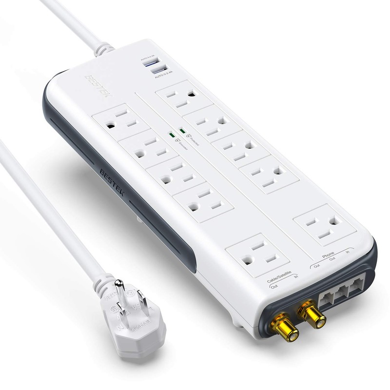 BESTEK High Joule Surge Protector, 4000 Joule 10-Outlet Power Strip with 2 USB Charging Ports, 6ft/14AWG Heavy Duty Extension Cord, Grounded & Protected Indicator