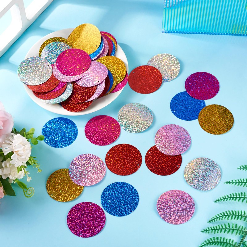 - Quality Material: Our colorful sequins are made from premium PVC, ensuring sturdiness and resilience. This material offers a glossy finish that is resistant to fading and damage, allowing your crafts to maintain their vibrant color and shine over time.