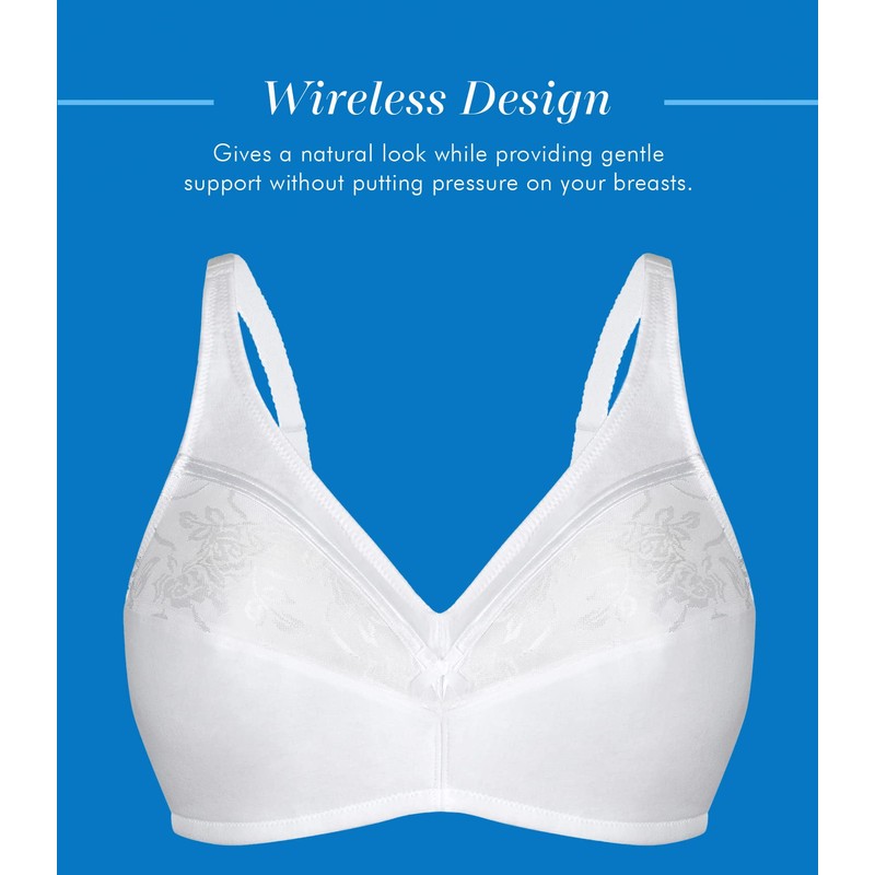 - ULTIMATE COMFORT. With breathable, soft cotton fabric and unpadded, wireless cups, you will barely even notice that you're wearing a bra!