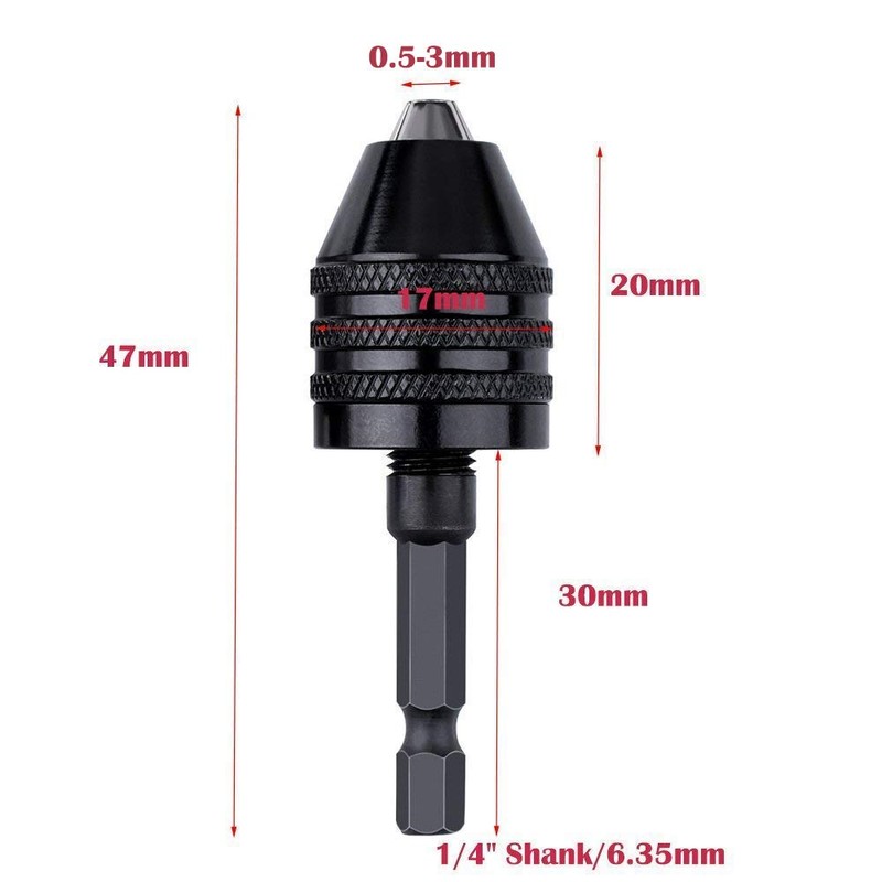 - 1/4" Hex Shank Keyless Drill Bit Chuck Adapter Converter Quick Change 0.5-3mm.