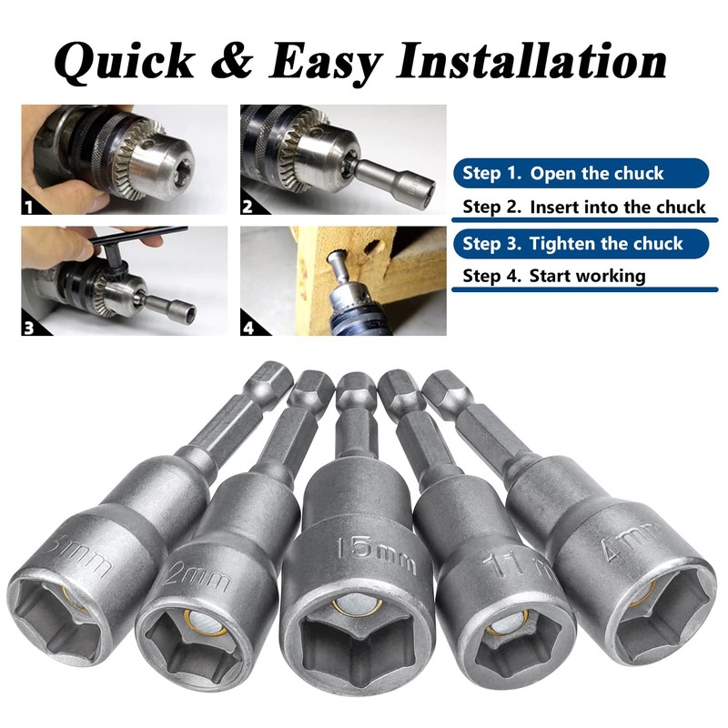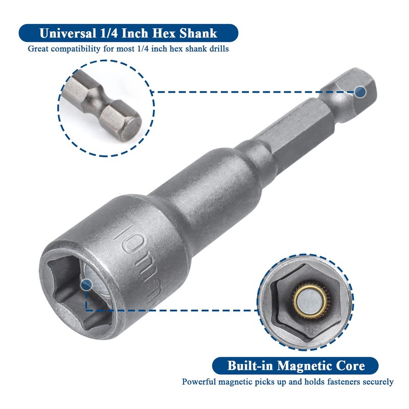 - Universal Function: 1/4 inch hex shank fits most electric corded or cordless drill, sturdy socket, magnetic nut locator can be used with impact/drill driver or hex socket ratchet.