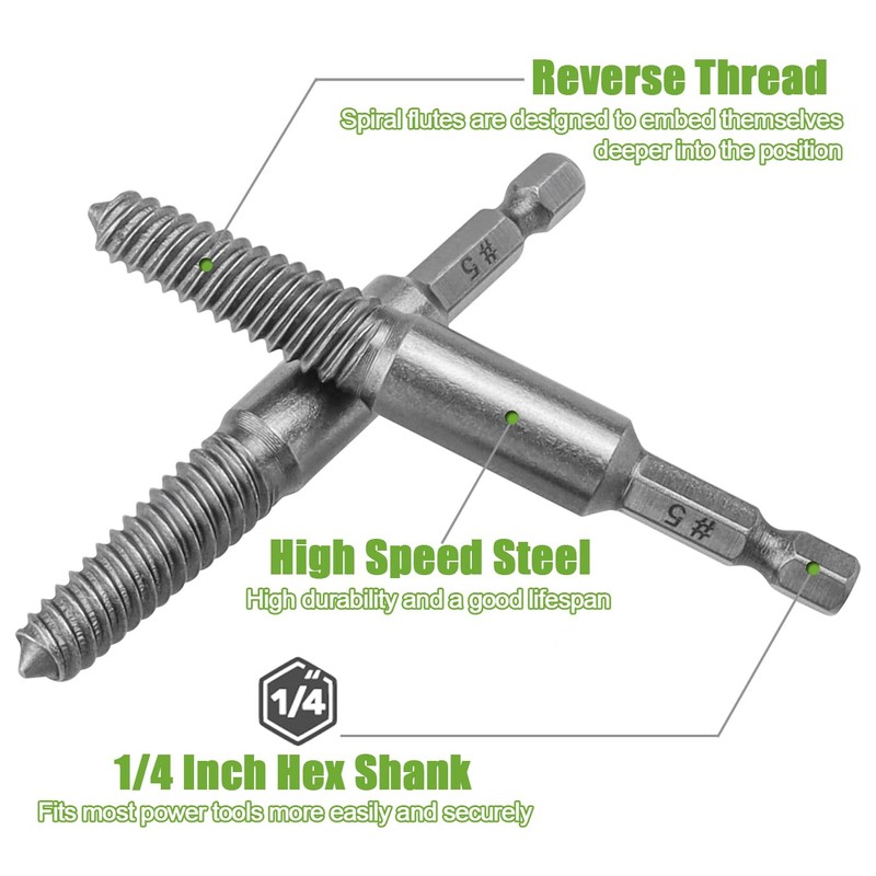 - Screw Extractor Broken Screw Remover Set Stripped Screw Extractor Kit 1/4" Hex Shank Damaged Bolts Removal Kit