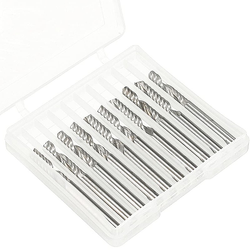 Bestgle 10pcs 1/8" Shank Tungsten Carbide End Mill Cutter, Single Flute Spira...