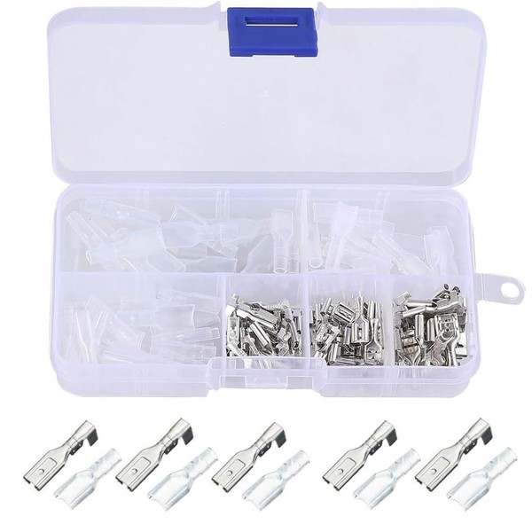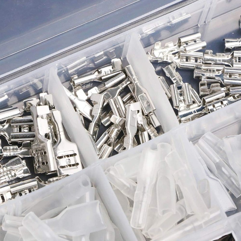 - Package included: 60pcs 2.8mm/4.8mm/6.3mm male and female crimp terminal connector block and 60pcs insulating sleeves total 120pcs.