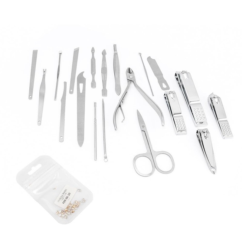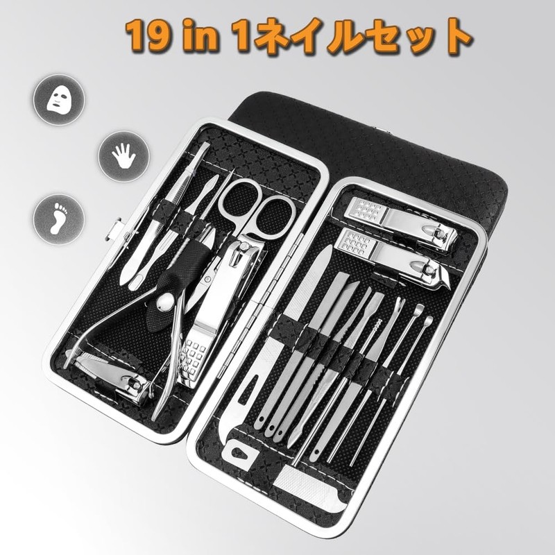 - プロフェッショナル 19 in 1 マニキュア セット - マニキュア、ペディキュア、フェイシャル、美容のニーズをワンストップでケアします。爪切り、ピンセット、眉毛カットハサミなどが含まれます。