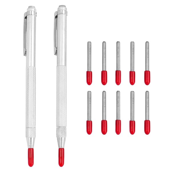 Bestgle 2 Pack Tungsten Carbide Scriber with Magnet, Aluminium Magnet Carbide Scribe Tool Etching Engraving Pen Kit Including 12 Pcs Replacement Marking Tips for Glass/Ceramics/Metal Sheet