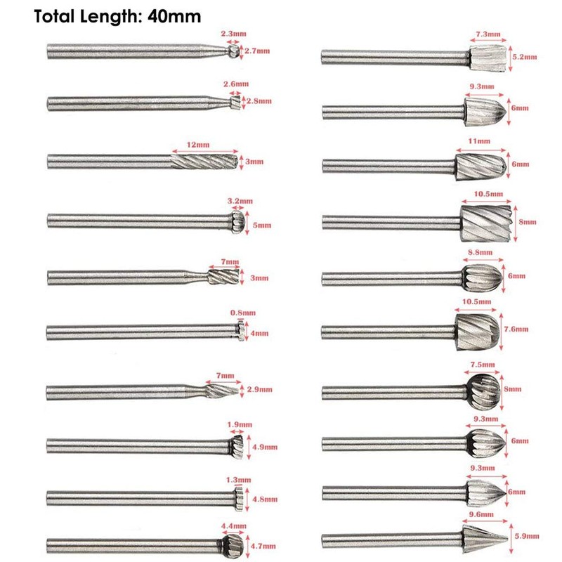 - 20 different shape bits which including rotary burrs, grinding head and rotary burr cutting tools etc.