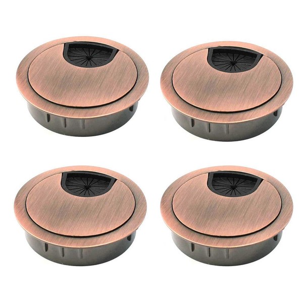 Bestgle 4 Pack Desk Grommet Kit Zinc Alloy Computer Desktop Grommets Wire Organizers Table Cable Cord Round Hole Cover for Home and Office, Fits 2-Inch Hole (Red Bronze)