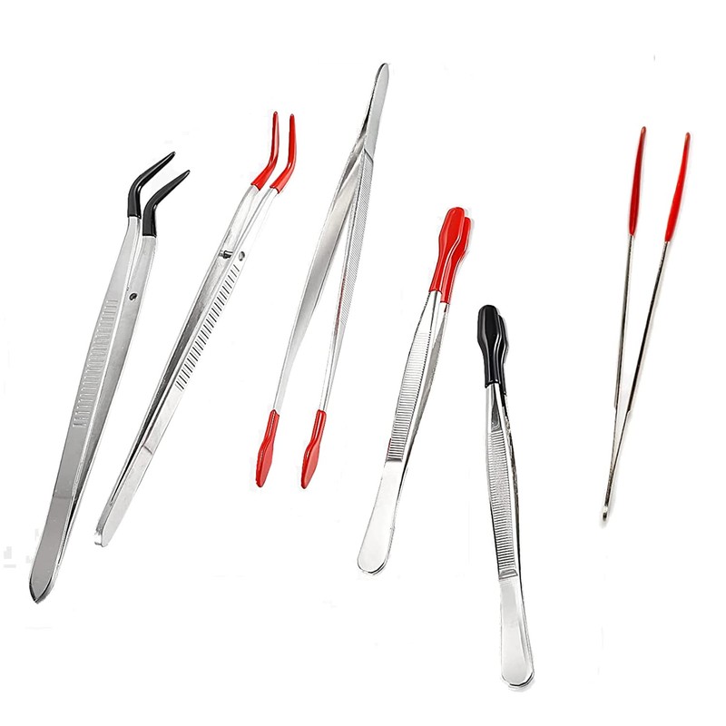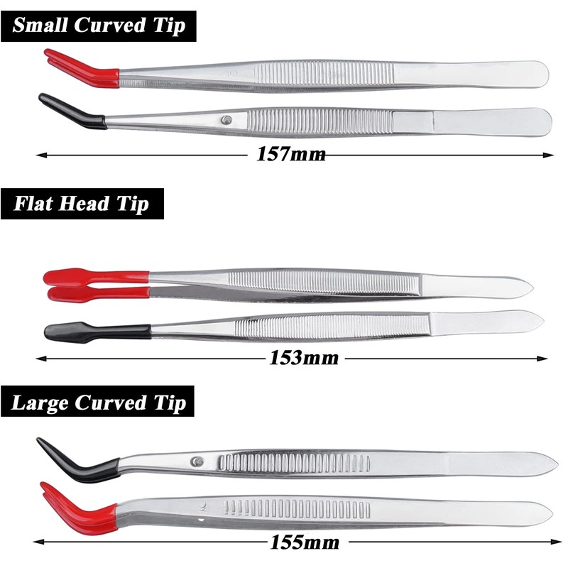 - Package Includes - Total 6 pcs tweezers which are 2 pcs large elbow tips tweezers, 2 pcs small elbow tips tweezers and 2 pcs flat tips tweezers.