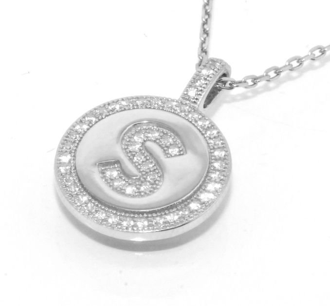 Bestgoldshop Initial Letter 'S' Pave CZ Disc Charm Pendant 925 Sterling Silver w/ Chain