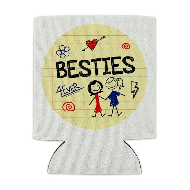 Besties Best Friends Can Cooler - Drink Sleeve Hugger Collapsible Insulator - Beverage Insulated Holder