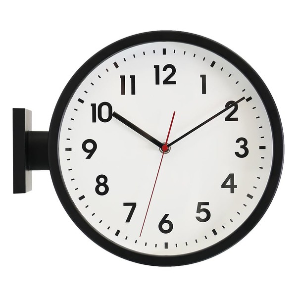 - The double-sided wall clock is made of aluminum material. The sturdy frame and glass lens are easy to clean and prevent dust from entering the watch face. Easily read the time with black hands, glass crystal and light dial. Designed to hang from indoor walls or ceilings.
