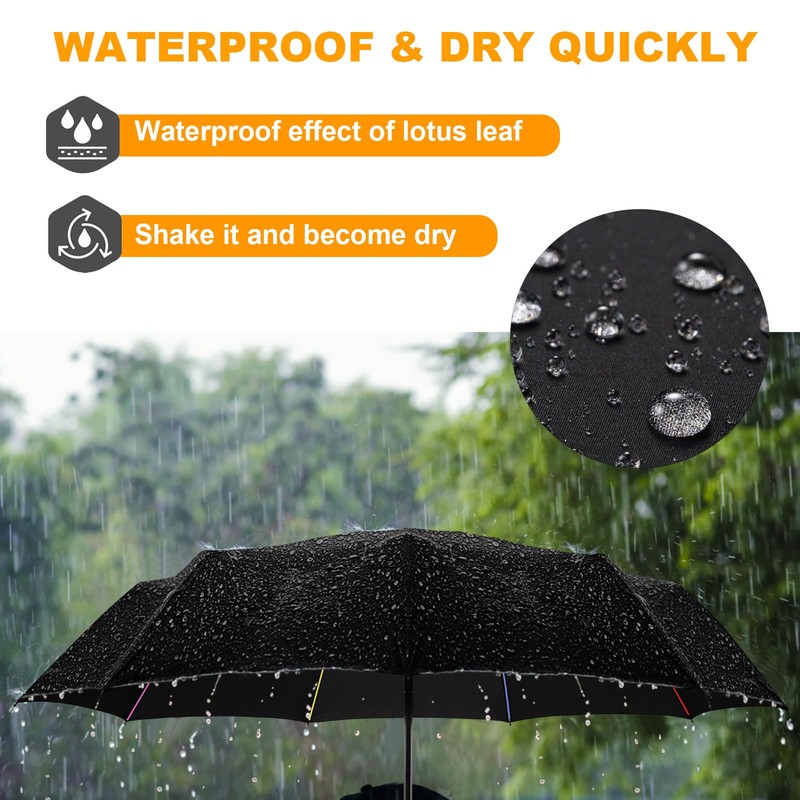 - ☔☔ SUPERIOR WATER-REPELLENCY - Waterproof, weatherproof and instantly dry, the foldable and durable Travel Umbrella defends against the elements like nothing else.
