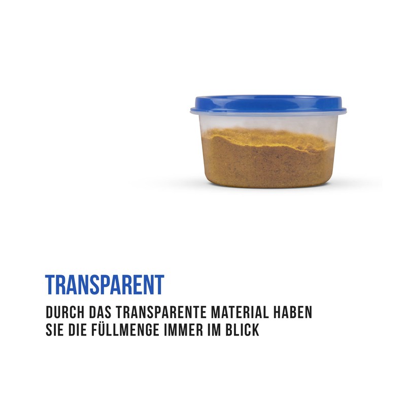 Our plastic storage jars with lids and a capacity of 50 ml are the ideal solution for storing and organising small amounts of food, spices, cosmetics and other items. With their durable plastic material and form-fitting lid, they provide a safe and practical storage solution for everyday use.