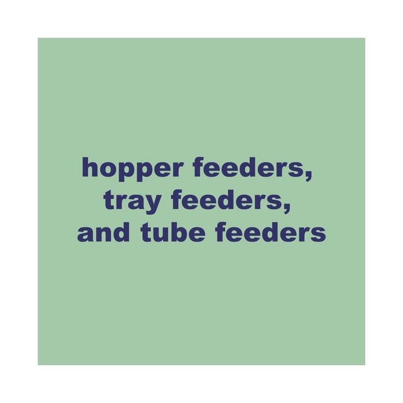 Feeder Options: hopper feeders, tray feeders, and tube feeders