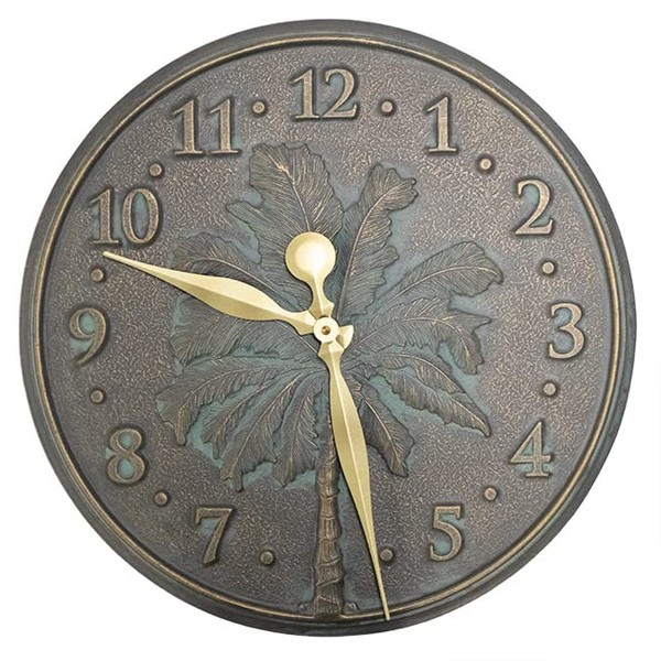 BestNest Whitehall Palm Tree Clock, Bronze Verdi, 16" Dia.