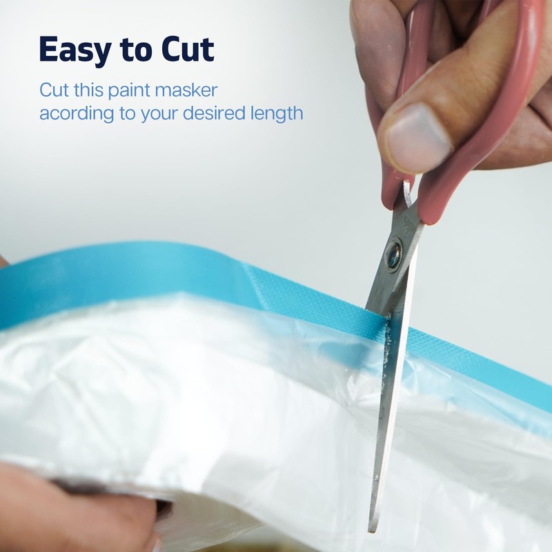 - EASY TO USE: This masking film is easy to use, just stick the tape side in right place, unravel the plastic film, it will slowly spread the plastic film to cover the object. Light weight, easy to roll out, paste and tear. Single person can do it and save time, money, and effort.
