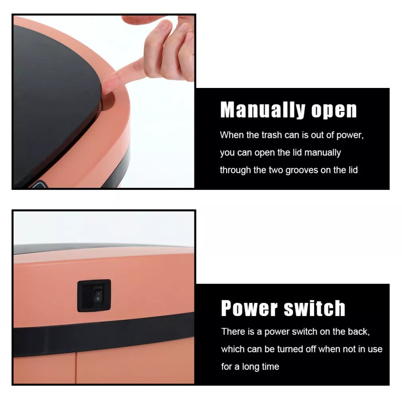 - 【Touch-less Design】-- This trash can adopts automatic sensing technology. Just wave in the sensing area of the trash can, and the lid of the trash can will open and close automatically, so that you can reduce contact.