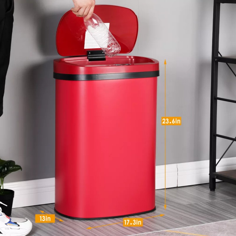 BestOffice 13 Gallon Kitchen Trash Can Automatic Touch Free Garbage Can with Lid Stainless - Red