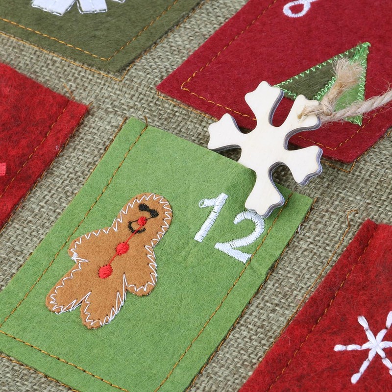 The Christmas tree advent calendar makes the countdown to Christmas fun. Move the marker to any date and put it in the bag to count the days. For more fun, put a treat in each bag to get closer to the days. The unique design has a Merry Christmas motif on the boot. The colours green, red and golden yellow are saturated and . It is attached to the wall with a hook on the back. Start a new family ancient tradition with this fun decoration