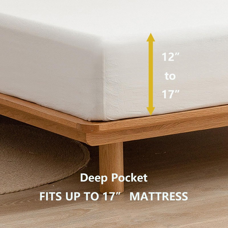 - Deep Pocket and Easy Fit: The fitted sheet fit mattresses up to about 17 inches deep. If you have a mattress that is less than 17 inches, it will fit fine. The sheet has perfect elasticity and thickness all around, with an elastic band around the edge to ensure a secure fit and won't shift while you sleep.