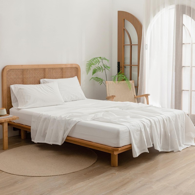 - Material: 100% washed cotton, breathable and cool, durable and lightweight, slightly wrinkled look, great linen feel. If you want a linen style bedding, this fitted sheet is beautiful and perfect! The fabric is so soft yet with a very light crispness to it, even after washing, and it will get softer with each wash. It's like sleeping in a cloud.