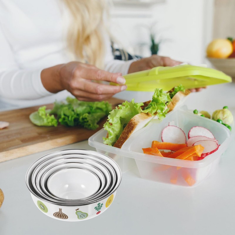 BESTOYARD 5pcs Enamel Preservation Bowl Containers Fresh Keeper Containers Bowls with Lids Soup Bowl Enamelware Mixing Bowl Sealed Containers Deepen Bowl Enamel Bowl Multipurpose