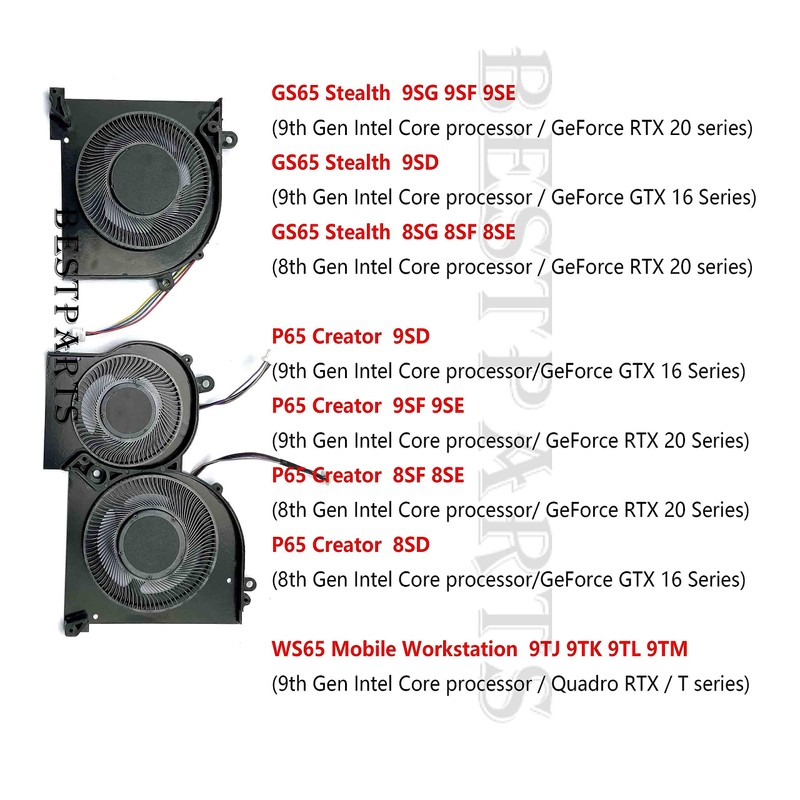 BestParts Upgraded CPU+GPU Cooling Fan Replacement for MSI GS65 Stealth, P65 Creator (9SG 9SD 9SE 9SF, 8SF 8SE 8SD), WS65 (9TJ 9TK 9TL 9TM), P/N: MS-16Q4, BS5005HS-U3I U3J
