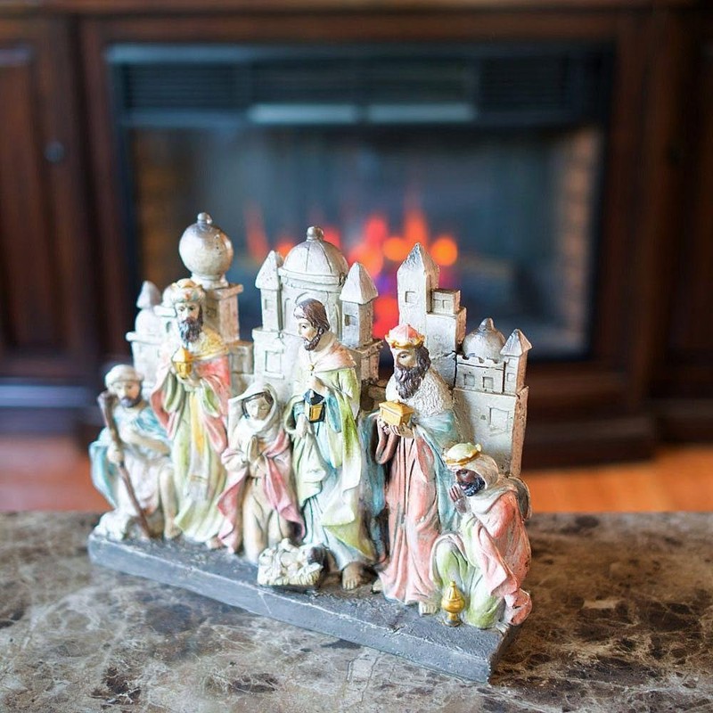 This nativity figurine depicts Mary and Joseph, the three wise men, a shepherd and a newborn Jesus in Bethlehem. A great addition to your seasonal decoration, this Nativity set will help get you into the holiday spirit and celebrate the true meaning of Christmas!