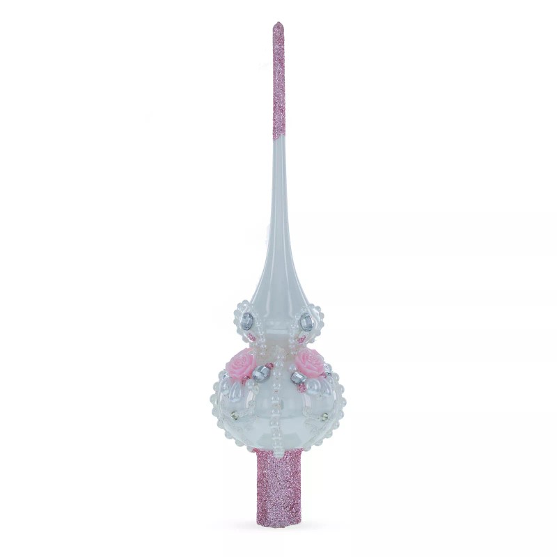 BestPysanky Dimensional Roses on Champagne Glass Christmas Tree Topper 11 Inches